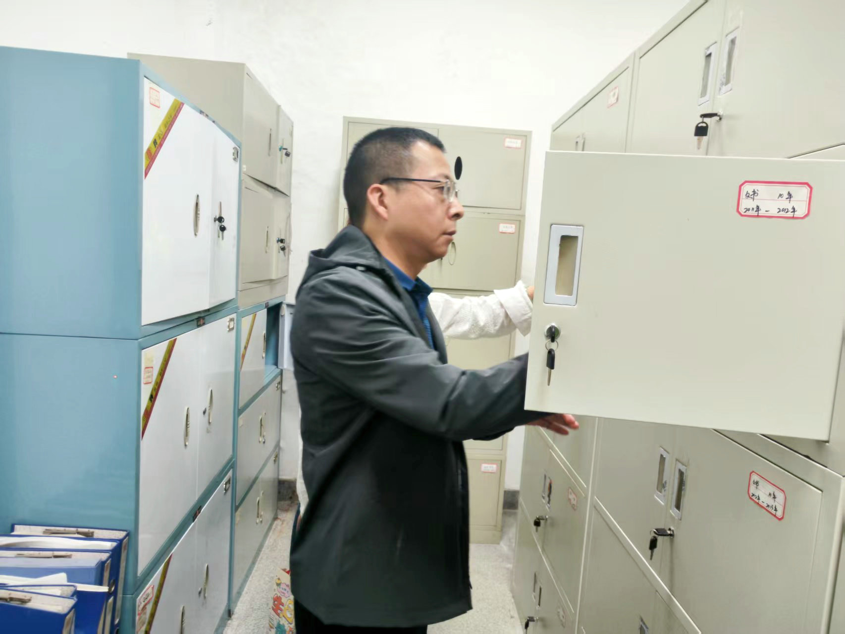調(diào)研現(xiàn)場,朱亞成一行先后查看了檔案室基礎(chǔ)設(shè)施建設(shè)、安全防護和視頻監(jiān)控等相關(guān)情況,重點抽查了各類檔案的歸檔、存儲、保管及查閱使用情況,全面掌握當(dāng)前檔案管理工作的實際現(xiàn)狀。