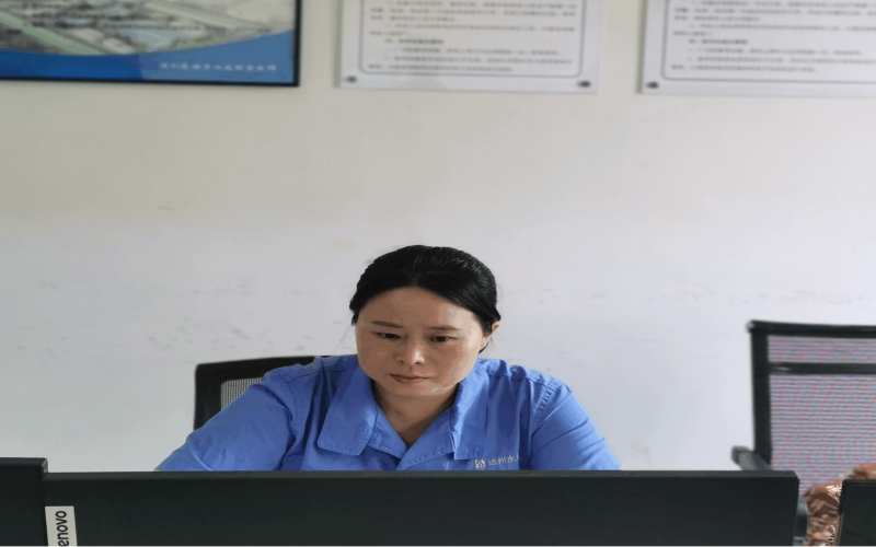 周家壩污水處理廠時常要接受中央、省、市環(huán)保督導與檢查,以及各種安全檢查。作為收集整理相關(guān)報表的工作人員,李紅每逢檢查就會提供相關(guān)迎檢材料,即使在非值班時間,她也會準時到場,確保順利過檢。